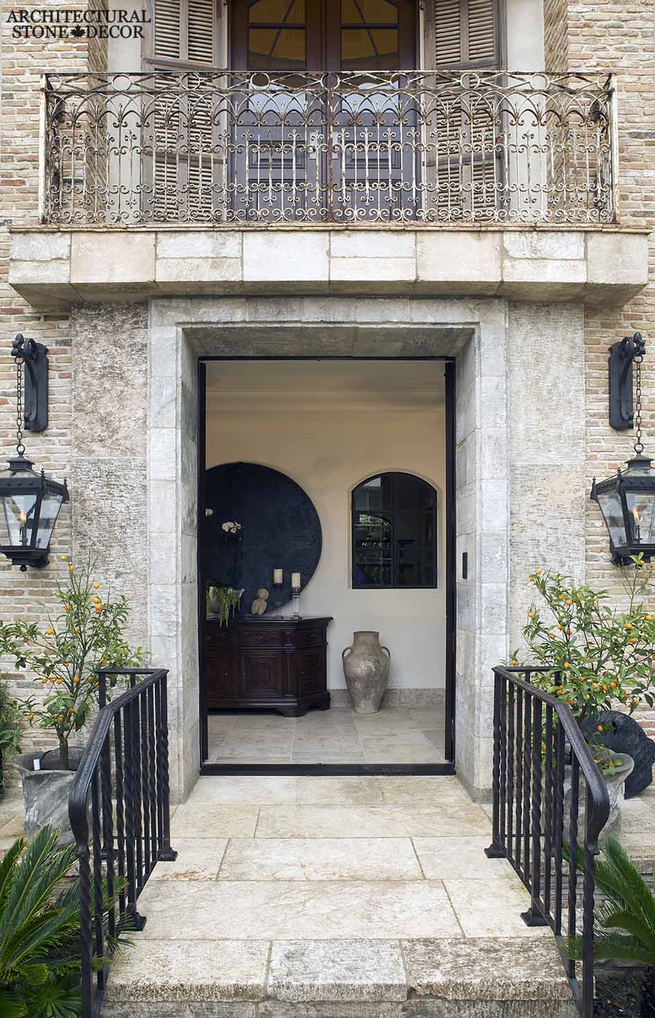 From simple to heavily carved, you can’t go wrong with natural limestone entryways. You are sure to find designs that suit all styles from minimalist, French country, Tuscan, Mediterranean, Italian, Roman, Coastal, Greek, English Tudorian and many more. Take a look below at some inspirational designs.