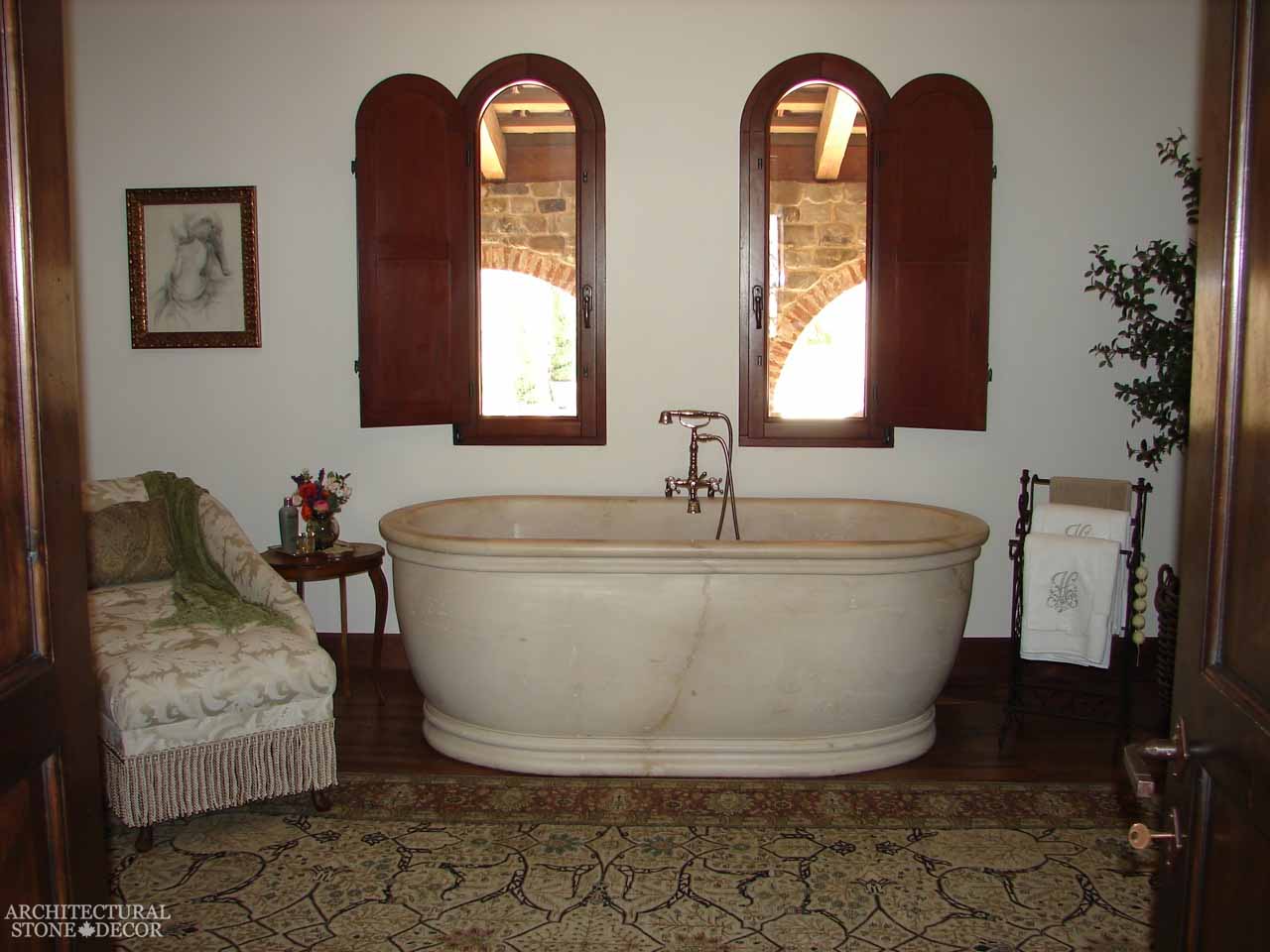 Natural limestone’s earth tones and texture make it compatible with just about any bathroom style from minimalist to old world, Tuscan, Mediterranean, French provincial, Country and Farmhouse. Our bathtubs are hand-carved from a solid block of stone making them durable and impermeable while our showers are aesthetic in their earth tones and practical whereby adding benches offers a zen showering experience. The texture of limestone in itself provides anti-slip functionality for the bathroom and shower.