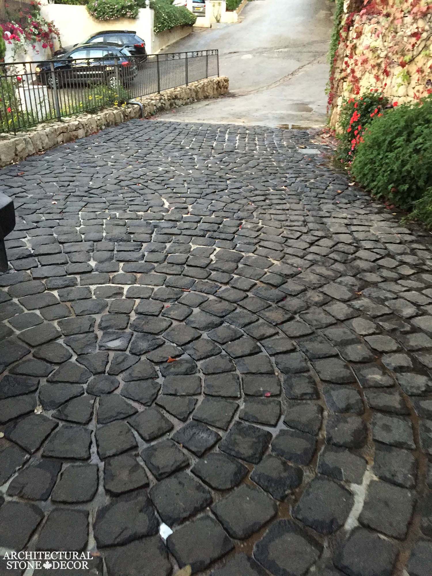 There are also other beautiful stone flooring to consider for certain outdoor areas like reclaimed french colored encaustic tiles, reclaimed brick flooring and more sturdy stone like basalt that; due to their dark color; can mask oil stains making it perfect for areas with heavy vehicle traffic.