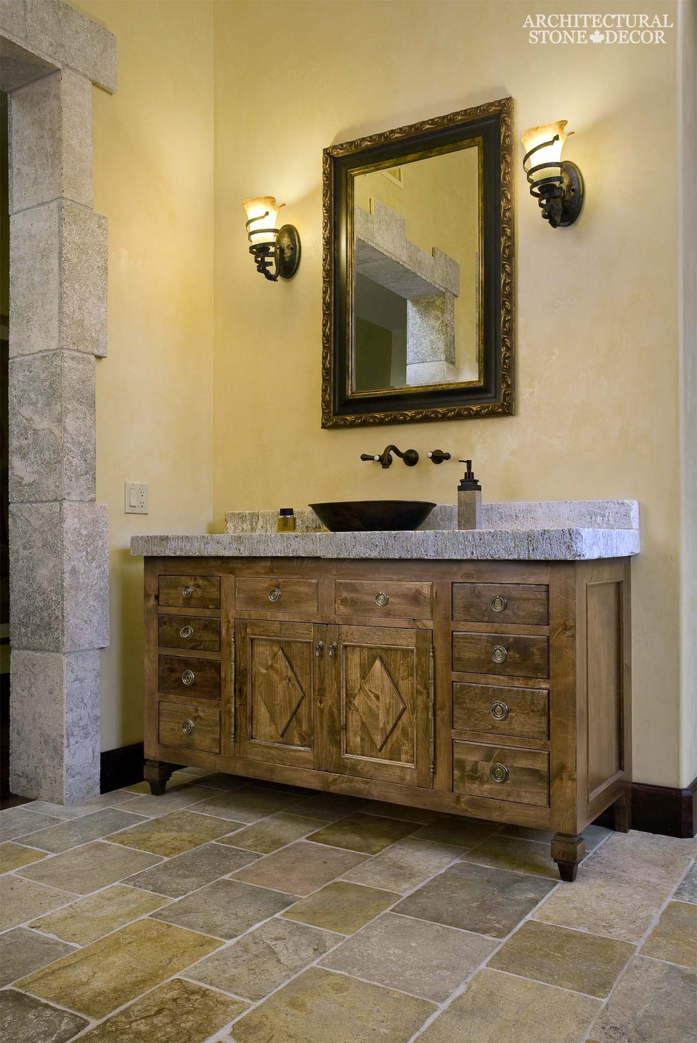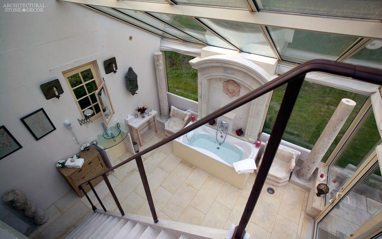 A west coast style master bedroom with a minimalistic raw looking reclaimed limestone fireplace mantel and wall cladding.A cottage style master bathroom with Versailles pattern stone flooring and hand carved stone bath tub.A Mediterranean coastal master bedroom characterized by its hand carved built in natural stone fireplace mantel, antiqued wall cladding and shelves.A modern Eclectic style master bathroom with natural stone flooring. The built in shower has limestone surround and flooring with black basalt wall cladding and ceiling.A 19th century French master bedroom with reclaimed French colored encaustic cement tiles.A 19th century style French master bathroom with reclaimed French colored encaustic cement tiles.A French country style master bedroom with an antiqued carved stone fireplace mantel.A French country master bathroom with multi-colored Versailles pattern reclaimed limestone flooring and built-in shower stone wall cladding. The shower surround and sink tops are from Greek marble. The different stone combinations is absolutely stunning.A French country exquisite master bathroom with antiqued natural stone flooring. The ceramic stand alone bath tub adds a modern flare.A farmhouse style master bedroom with a reclaimed hand carved limestone fireplace mantel.A French country master bathroom with reclaimed “Barre Blonde” limestone flooring.A French Mediterranean style master bedroom with an antiqued limestone fireplace mantel and mantel overhead cladding. The arch and columns over the bed are cladded with reclaimed natural stone.West Coast style master bedroom with a reclaimed hand carved natural stone fireplace mantel and antiqued limestone flooring. The rustic wood beams give character and contrast to this room.A craftsman rustic master bathroom with butcher block countertop and antiqued limestone flooring.A Tuscan master bathroom with a heavy stone flare. The entryway surround, flooring and bath tub cladding are all antiqued limestone.West Coast style master bedroom with a reclaimed antiqued hand carved natural limestone fireplace mantel.A neoclassical Romanesque style master bathroom with reclaimed limestone flooring, roman decorative columns and wall fountain bath tub.A Louis style master bedroom with an antiqued stone fireplace mantel and limestone flooring planks.A Tuscan style master bathroom with reclaimed limestone flooring, wall cladding and bath tub surround. The hand etched art stone piece and butcher block counter top complete this look.A Mediterranean style master bedroom. The natural stone fireplace mantel is a perfect centerpiece with the surrounding quiet seating area.A modern master bathroom with black basalt flooring.A Medieval neo-gothic bedroom with modern commodity of a television that fits well surrounded with the ‘Barre Montpelier’ wall cladding and corners and ‘Dalle de Bourgogne’ flooring. The old yellow chairs add a touch of color and the fur blankets add authenticity. Credits: This photo is from stonehallcastle.com in Regina, Saskatchewan, CanadaFur blankets and pillows, rustic wood doors, old wood ceiling beams, wooden bed, reclaimed limestone ‘Barre Montpelier’ wall cladding and ‘Dalle de Bourgogne’ flooring and suddenly you are sleeping in a Medieval Gothic style master bedroom. Credits: This photo is from stonehallcastle.com in Regina, Saskatchewan, CanadaA Craftsman rustic style master bathroom with a reclaimed limestone trough sink. The terracotta flooring complete the old world look.