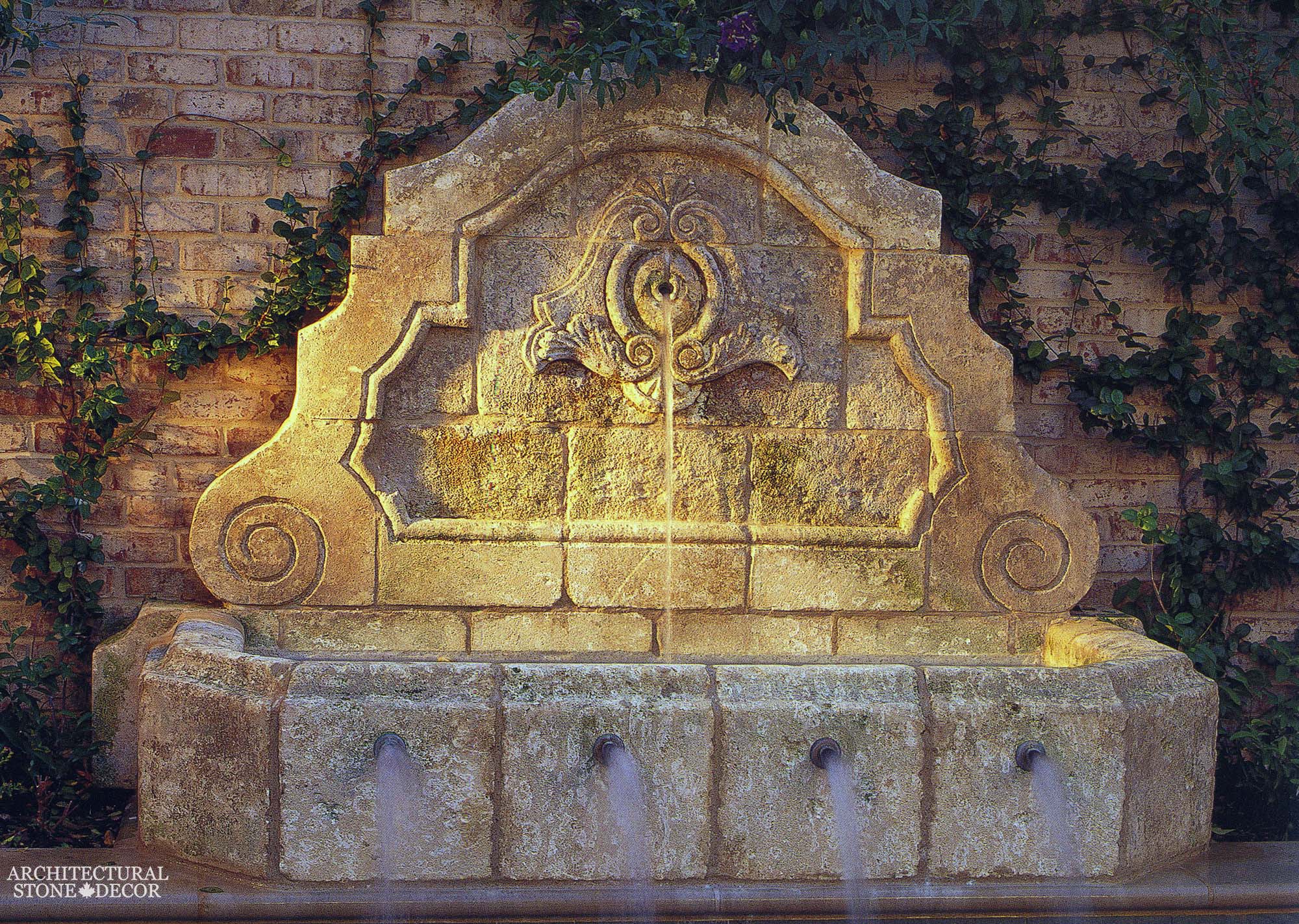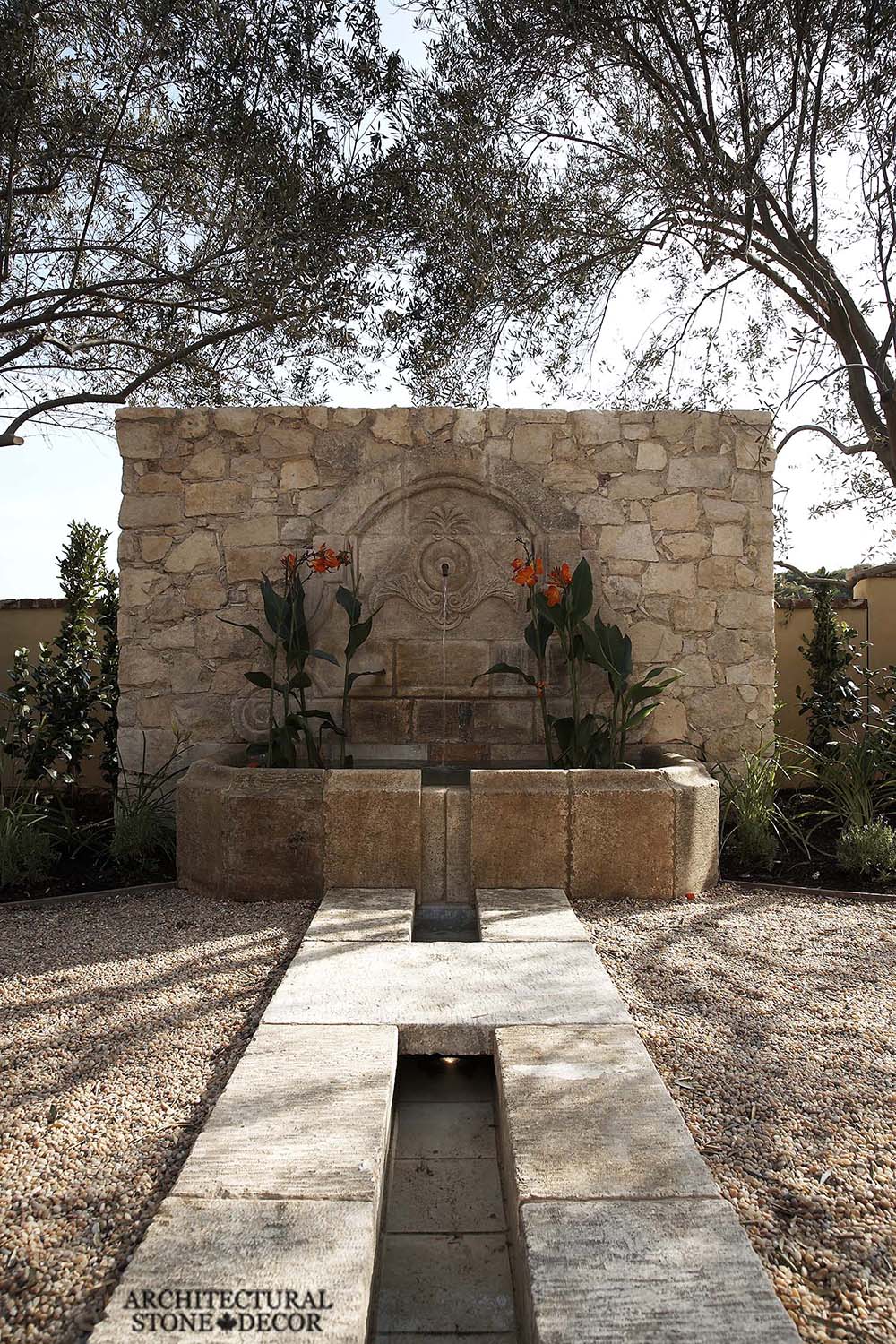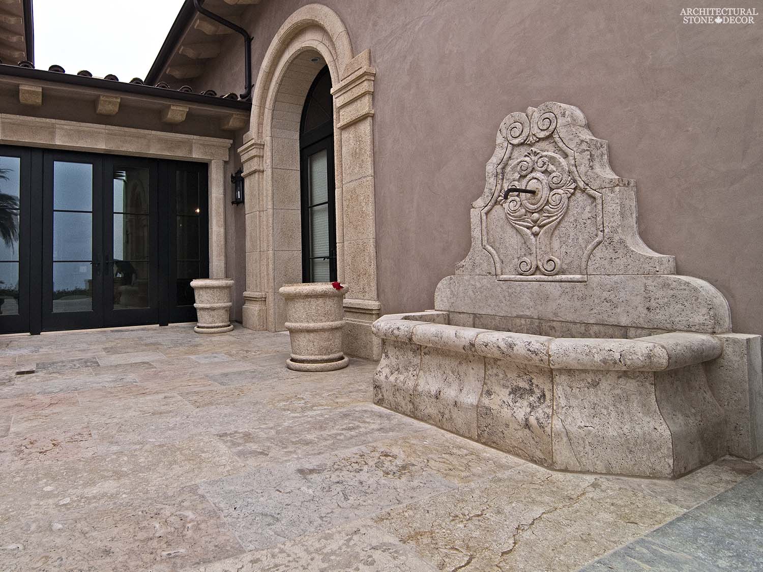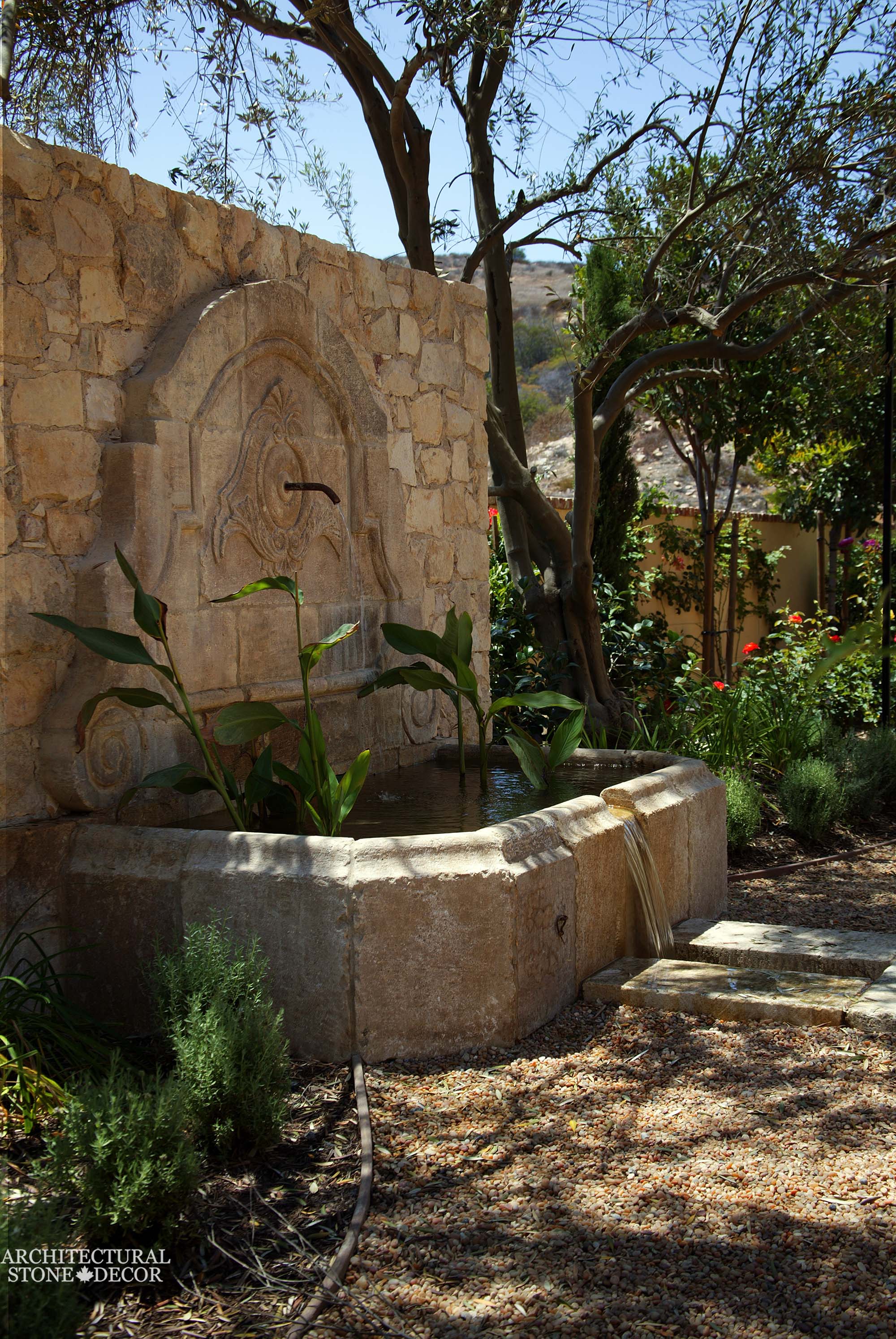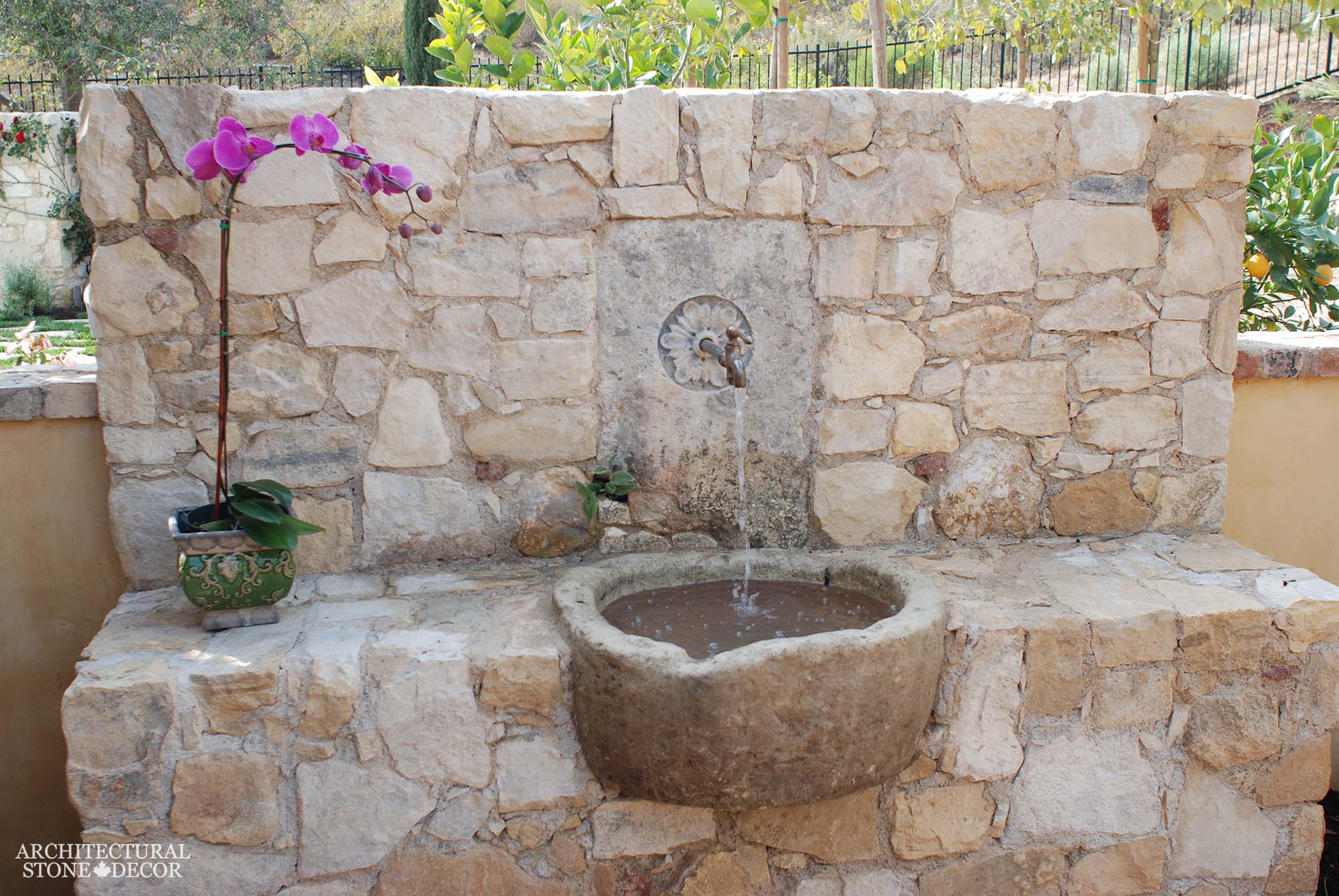 Indulge yourself with 28 breathtaking photos of hand carved natural stone Tuscan Mediterranean wall and pool fountains.